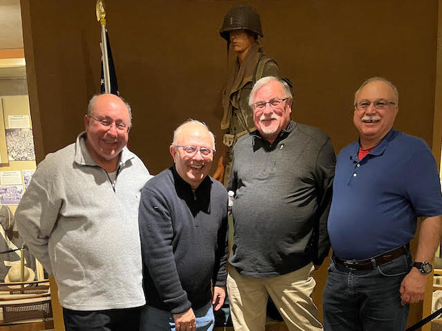 On March 21, IAVM Curator Steve Corbo took (from left) Fred Ruiz, Ray Trzeciak, Tim Clark, and Roger Laurella on a tour of the museum. Laurella and Trzeciak are supporters of the Disabled American Veterans. Ruiz is a U.S. Army Veteran and Clark has a son in the U.S. Army who has served three tours of duty in Iraq/Afghanistan. All are taking part in the Chicagoland Ray Hobbs Men’s Baseball Charity Game to Benefit Veterans Honor Flight Chicago. The Aug. 3 game will feature live entertainment and a special Veterans ceremony. For a downloadable flyer, click here.
